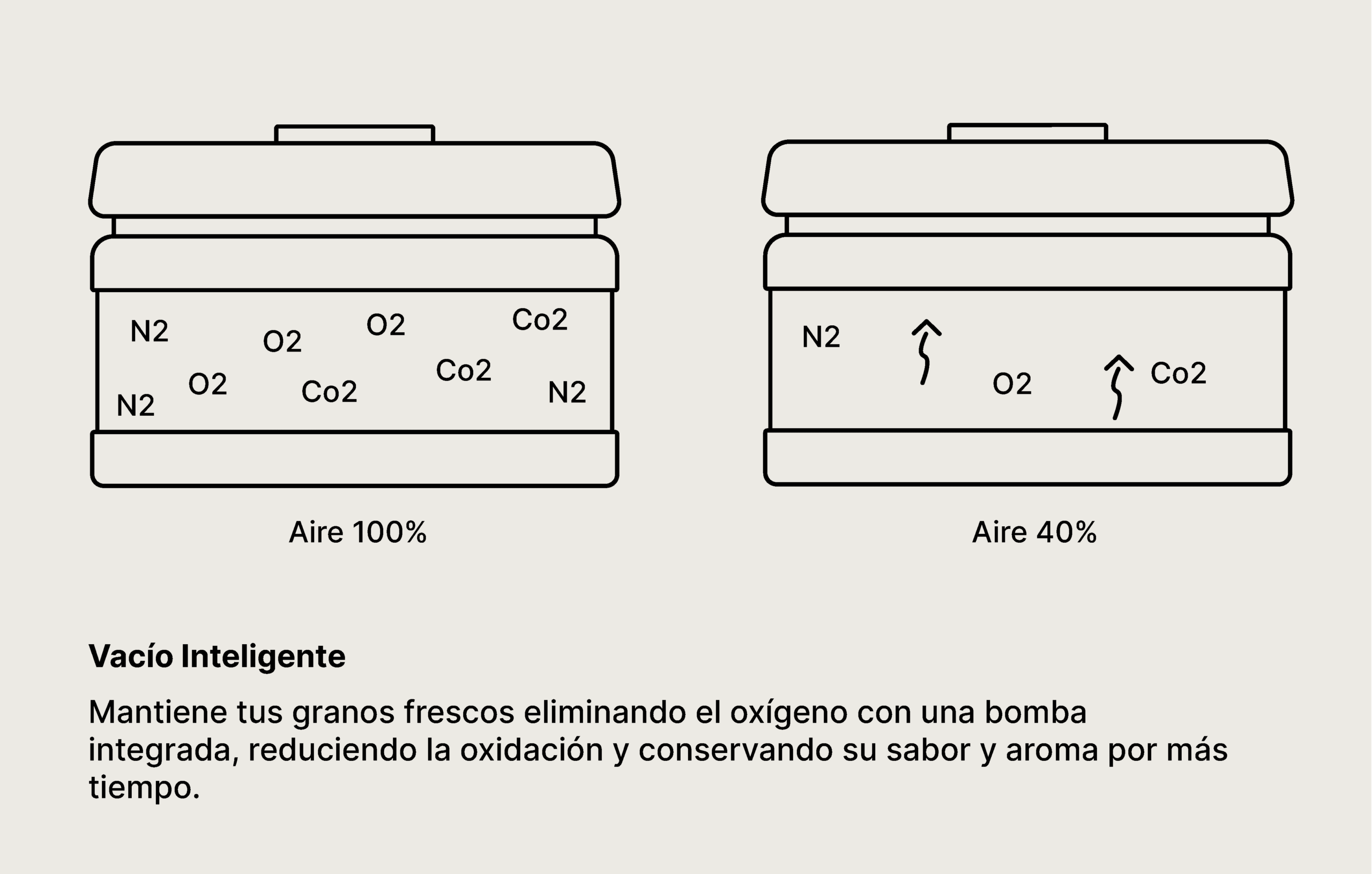 Conserva las cualidades de tu café por más tiempo con nuestro contenedor al vacío. Su válvula de cierre protege los granos del aire y de la humedad, manteniendo la frescura del café por más tiempo. Compacto, resistente y confiable, es un accesorio esencial para aquellos que cuidan cada detalle.